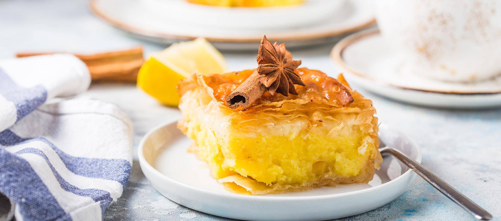 den Galaktoboureko für 10 Minuten in den Kühlschrank stellen