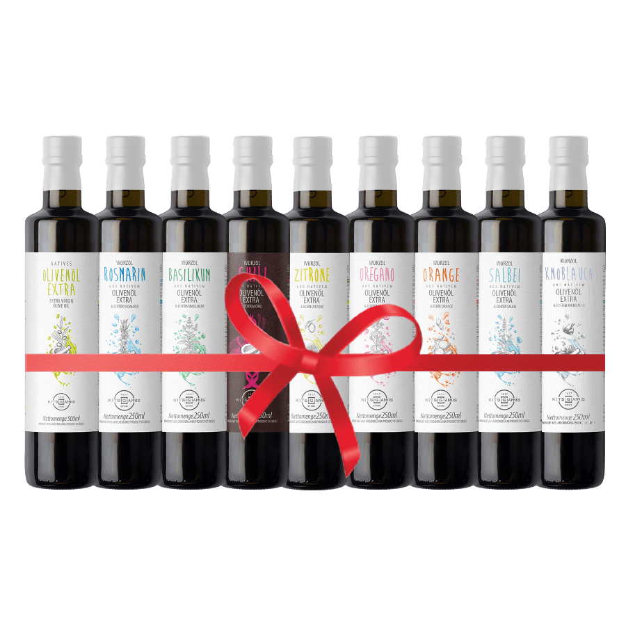 Mit unseren Set-Angeboten haben Sie die Möglichkeit, unser Natives Olivenöl Extra und unsere Würzöle zum Vorteilspreis im Set zu kaufen. Das "Alleskönner"-Set enthält all unsere Öle und wird Ihrer Küche griechisches Flair verleihen.